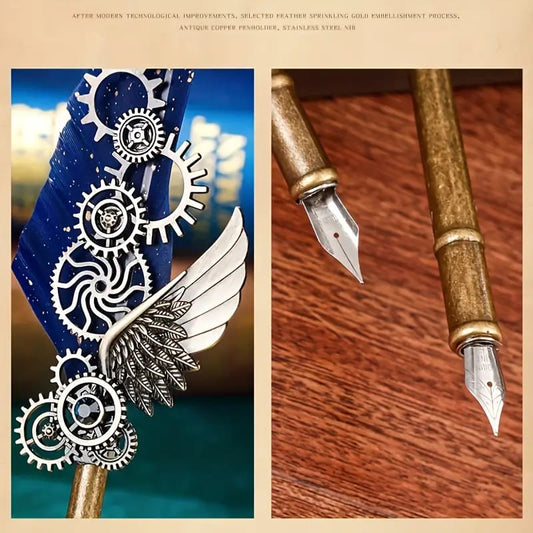 Quill Pen Set, Feather Pen, Ink, Bookmarks, Seals, Nibs, Wax Bead, Envelopes, Writing Paper
