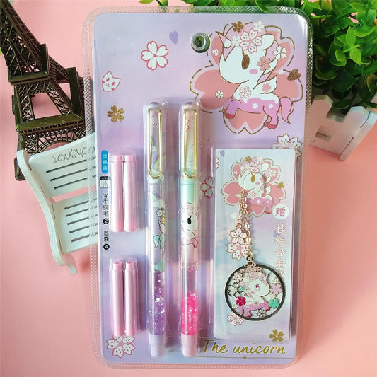 Cute Unicorn Glittery Fountain Pen Set With Book Mark